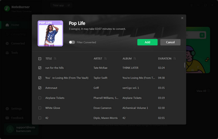 Step 3: Select Tidal songs to convert in batches