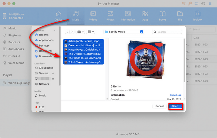 Now that you've downloaded World Cup Qatar 2022 songs to MP3, the next part to transfer the downloaded World Cup songs to your phone for offline listening via Syncios Mobile Manager
