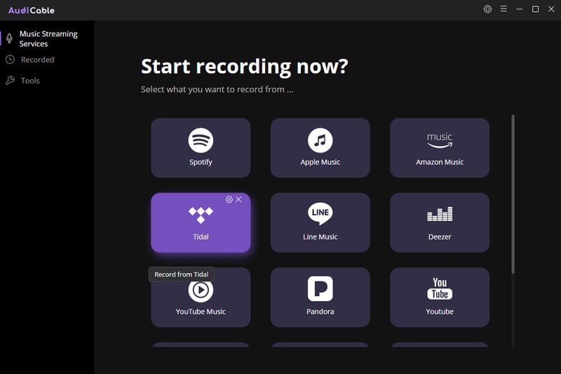AudiCable Audio Recorder is a professional music downloader designed by a conscientious group. This program provides a perfect solution to eliminate the restrictions of Tidal Music. You can download Tidal music, albums, playlists, and other audio files in common formats and enjoy the playback forever. The downloaded Tidal songs can be moved to any device. In addition, This all-in-one AudiCable Music Recorder support extracting music from more music sources, including Spotify, Apple Music, Amazon Music, Line Music, Deezer, YouTube Music, Pandora, etc. Let's check the detailed steps to download Tidal music offline with a free plan.